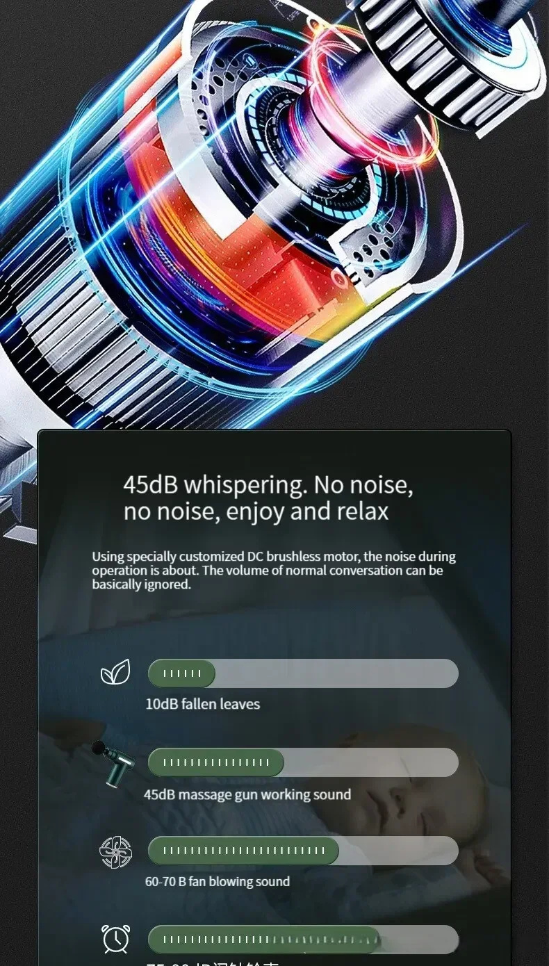 Thanks to its dual-bearing construction, the fascia gun transmits stable force without excessive vibration, ensuring a comfortable experience while maximizing energy transfer. Achieve unparalleled relaxation and recovery with our professional-grade fascia gun, designed for both effectiveness and silence.